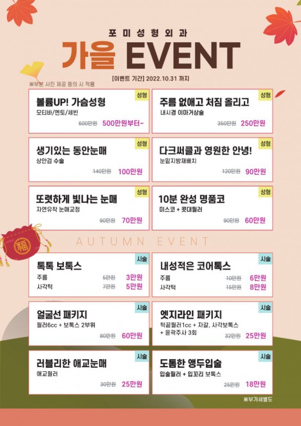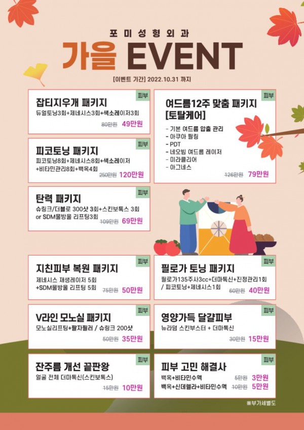 포미 9,10월 이벤트 페이지 정보 작성자 포미성형외과 작성일22-08-25 10:29 조회4,332회 관련링크 이전글 다음글 목록 답변 본문 포미 9,10월 이벤트 이전글 다음글 목록 답변