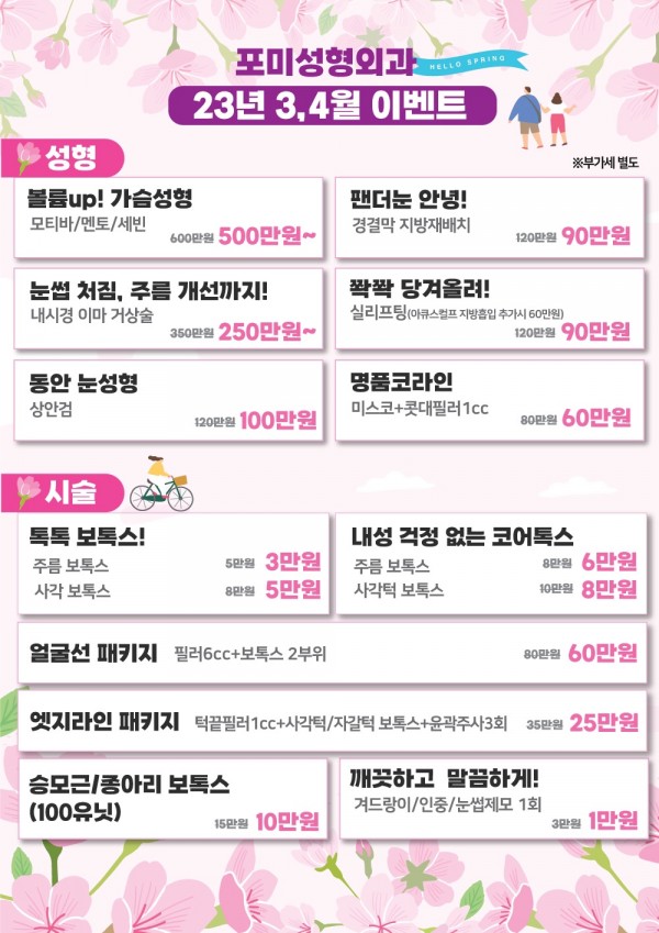 3, 4월 이벤트 1 페이지 정보 작성자 포미성형외과 작성일23-03-02 14:10 조회3,036회 관련링크 이전글 다음글 목록 답변 본문 3, 4월 이벤트 1 이전글 다음글 목록 답변