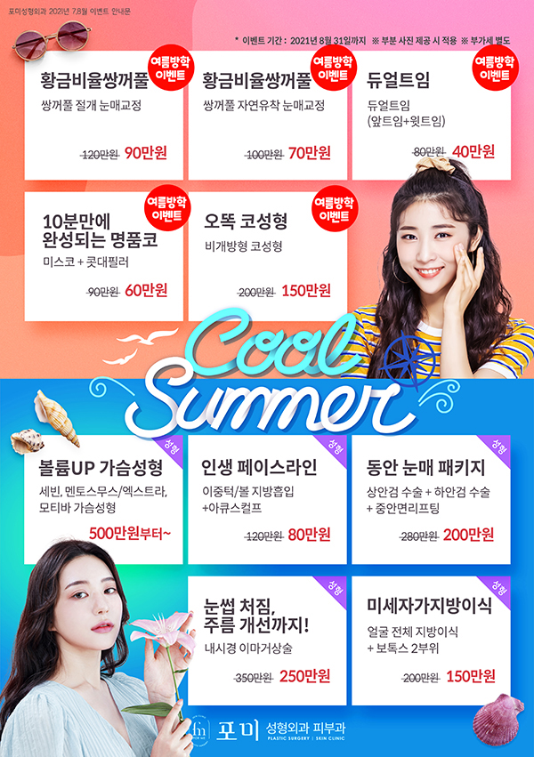 포미 7,8월 이벤트1 페이지 정보 작성자 포미성형외과 작성일21-07-01 12:49 조회3,074회 관련링크 이전글 다음글 목록 답변 본문 포미 7,8월 이벤트1 이전글 다음글 목록 답변