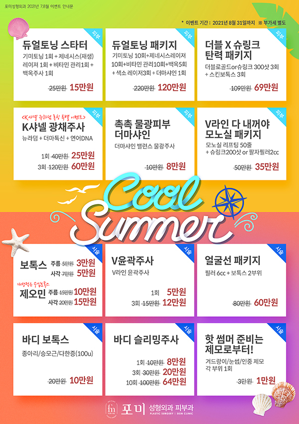 포미 7,8월 이벤트2 페이지 정보 작성자 포미성형외과 작성일21-07-01 12:51 조회4,114회 관련링크 이전글 다음글 목록 답변 본문 포미 7,8월 이벤트2 이전글 다음글 목록 답변