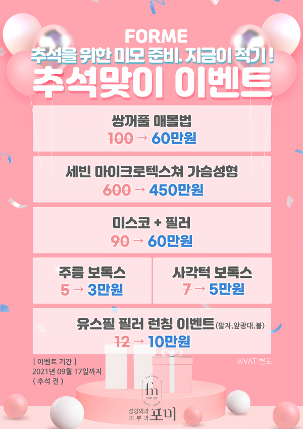 추석 D-30 이벤트 페이지 정보 작성자 포미성형외과 작성일21-08-24 14:54 조회3,960회 관련링크 이전글 다음글 목록 답변 본문 추석 D-30 이벤트 이전글 다음글 목록 답변