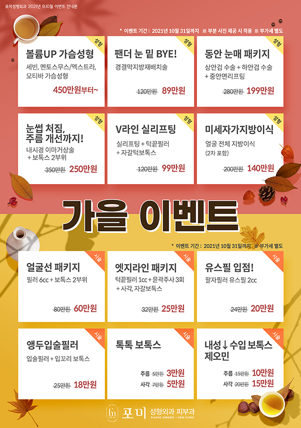 포미 9,10월 이벤트1 페이지 정보 작성자 포미성형외과 작성일21-09-01 15:45 조회3,394회 관련링크 이전글 다음글 목록 답변 본문 포미 9,10월 이벤트1 이전글 다음글 목록 답변