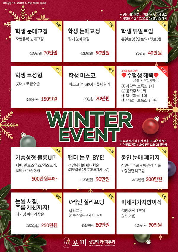 포미 11,12월 이벤트2 페이지 정보 작성자 포미성형외과 작성일21-11-01 14:08 조회6,458회 관련링크 이전글 다음글 목록 답변 본문 포미 11,12월 이벤트2 이전글 다음글 목록 답변