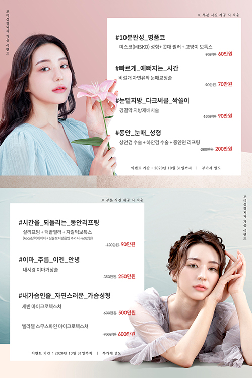 포미 9,10월 이벤트 2 페이지 정보 작성자 포미성형외과 작성일20-09-11 17:07 조회3,122회 관련링크 이전글 다음글 목록 답변 본문 포미 9,10월 이벤트 2 이전글 다음글 목록 답변