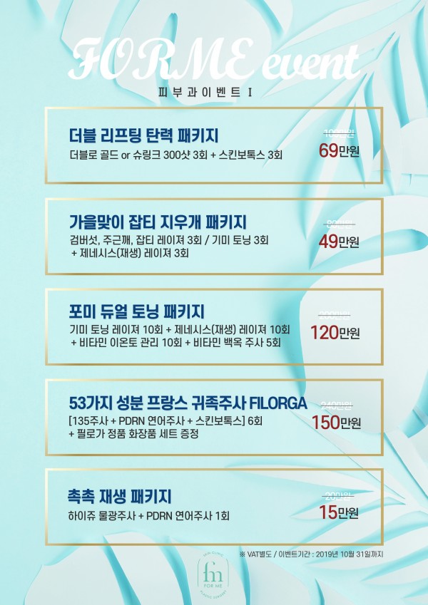 9-10월 피부과이벤트 #1 페이지 정보 작성자 포미성형외과 작성일19-09-02 10:47 조회2,874회 관련링크 이전글 다음글 목록 답변 본문 9-10월 피부과이벤트 #1 이전글 다음글 목록 답변