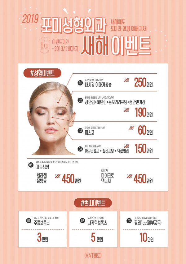 2019 포미 새해 이벤트 #2 페이지 정보 작성자 포미성형외과 작성일19-01-02 14:25 조회3,870회 관련링크 이전글 다음글 목록 답변 본문 2019 포미 새해 이벤트입니다. 많은 관심 부탁드립니다 :-) 이전글 다음글 목록 답변
