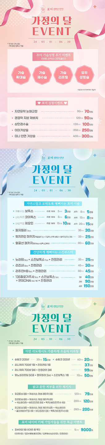 5-6월 가정의 달 이벤트 페이지 정보 작성자 포미성형외과 작성일24-04-30 17:13 조회1,619회 관련링크 이전글 다음글 목록 답변 본문 5-6월 가정의 달 이벤트 이전글 다음글 목록 답변